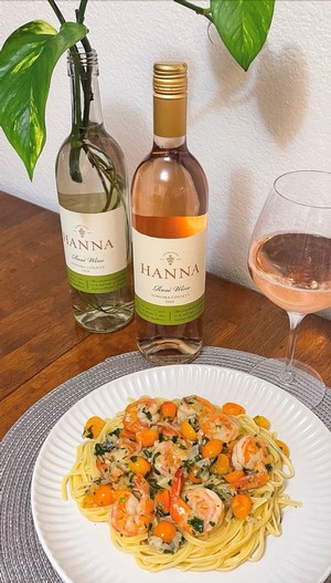 Instructions In a deep saucepan on medium heat, add two tablespoons of olive oil. When the oil is shimmering, add onions and sauté until translucent. Add in minced garlic and prawns. Salt and pepper one side of the prawns. Flip the prawns after 1 ½ mins and stir the onions and garlic so they do not burn. Add Rosé and allow the wine to simmer and reduce down by half. Add tomatoes and Italian parsley, turn off the burner and stir to combine. Serve over pasta with a glass of chilled HANNA Rosé. |