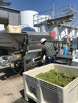Javier Mendoza processing Sauvignon Blanc grapes. |